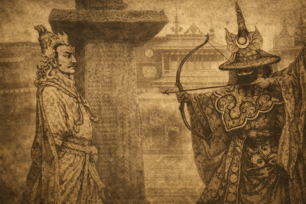 What the contemporary record does preserve is a picture of an imperial court under severe institutional strain. Under Lang Darma’s brother and predecessor, Tri Tsug Detsen (r. 815–841), popularly known as Tri Ralpachen, the Buddhist establishment and clergy had accumulated extraordinary power. Decrees required seven households to support a single monk. Ralpachen’s religious expenditure is thought to have contributed to a fiscal crisis.4 The most influential figures at the imperial court were clerics, among them the monk-minister Nyang Ting-ngé dzin. Massive state-sponsored translation projects consumed imperial resources on a scale that generated resentment among court factions, particularly those aligned with the Bon tradition. Lang Darma’s attempts to curtail clerical power are better understood as a pragmatic political effort to rebalance a court tilted dangerously toward Buddhist institutional interests. As the empire’s fiscal base eroded, the ‘Seven Households’ decree transformed from a pious gesture into a socio-economic chokehold. By framing Lang Darma’s fiscal reforms as ‘persecution,’ later historians successfully reframed a state bankruptcy as a cosmic battle between good and evil.